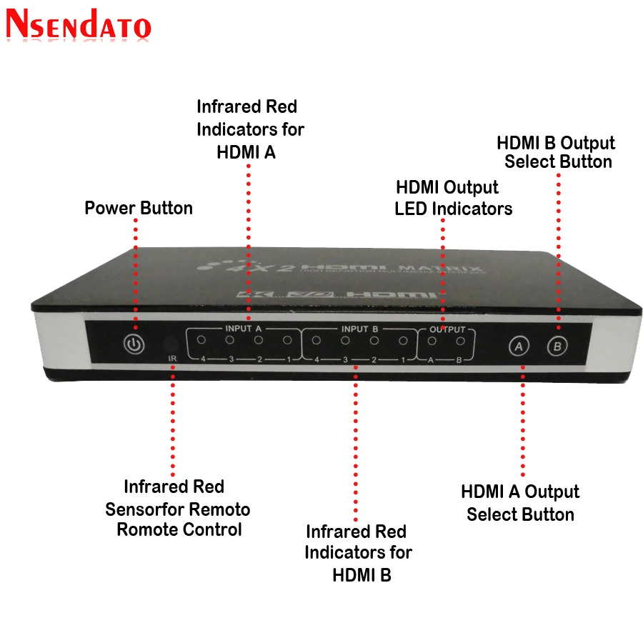 astounding Full HD 4K 2K 3D 1080P HDMI Matrix 4X2 Switch Splitter Converter Adapter with Remote Control Digita